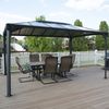Der Gartenpavillon Martinique Garden ist so konzipiert, dass er das ganze Jahr über für Eleganz und Zweckmäßigkeit in Ihrem Garten sorgt. Die Struktur des Palermo Pavillons ist robust, langlebig und bietet Schutz vor der Sonne. Das Dach ist aus sehr robusten Polycarbonatplatten gefertigt und spendet im Sommer angenehmen Schatten. Außerdem befindet sich oben auf dem Dach eine Öffnung für eine bessere Luftzirkulation und Belüftung. Die Konstruktion besteht außerdem aus rostfreiem Aluminium und kann leicht von zwei Personen aufgebaut werden.