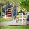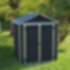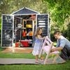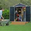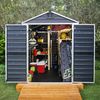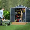 Die Einzigartigkeit dieser Gerätehäuser liegt in dem getönten Skylight-Dach. Wenn man von außen auf das Dach schaut, ist das Dach nicht durchsichtig. Wenn Sie im Inneren des Gerätehauses stehen, werden Sie sehen, dass die Paneele Sonnenlicht durchlassen, so dass Ihr Gerätehaus tagsüber beleuchtet ist. Ihre Privatsphäre ist garantiert und Sie brauchen keine Fenster im Gerätehaus.