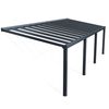 Durch ein praktisch unzerbrechliches, 100% UV-geschütztes, kristallklares 4 mm solides Polycarbonat-Dachsystem sind sie perfekt vor UV-Strahlung sowie Schnee geschützt. Ein weiterer Vorteil ist die robuste und massive Struktur, sodass die Terrassenüberdachung besonders langlebig ist. Hinzu kommen die rostbeständigen Aluminiumprofile in anthrazit und verzinkte Stahlverbinder.