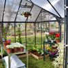 Dieses große, luxuriöse Gewächshaus ist sehr leicht zugänglich. Sie betreten das Gewächshaus durch die Doppeltüren von 209 cm Höhe. Diese können Sie ganz einfach mittels eines Magnetverschlusses sichern. Auf dem Boden befindet sich eine niedrige Schwelle, die nach unten fällt, so dass Sie beispielsweise mit einer Schubkarre leicht eintreten können. Das Gewächshaus bieten Ihnen viel Platz um sich zu bewegen und zu arbeiten. Die Firsthöhe von nicht weniger als 269 cm trägt unmittelbar dazu bei. Dadurch können auch Ihre Pflanzen gut wachsen.