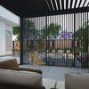 Wenn es zu regnen beginnt, können die Lamellen geschlossen werden, und das einzigartige integrierte Wasserablaufsystem macht das Dach 100% wasserdicht.