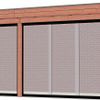 Die Basis einer Trendhout-Veranda ist aus dauerhaftem Douglass-Holz gefertigt. Die optionalen Wände sind aus Kiefernholz gefertigt und in verschiedenen Farben erhältlich. Die Glasschiebewände sind aus Einfachverglasung gefertigt. Um die Lebensdauer Ihrer Veranda zu verlängern, empfehlen wir, die Holzwände zu beizen.