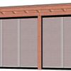 Die Basis einer Trendhout-Veranda ist aus dauerhaftem Douglass-Holz gefertigt. Die optionalen Wände sind aus Kiefernholz gefertigt und in verschiedenen Farben erhältlich. Die Glasschiebewände sind aus Einfachverglasung gefertigt. Um die Lebensdauer Ihrer Veranda zu verlängern, empfehlen wir, die Holzwände zu beizen.