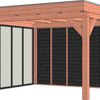 Der Sockel eines Trendhout-Außenunterstandes ist aus langlebiger Douglasie gefertigt. Die optionalen Wände sind aus Kiefernholz gefertigt und in verschiedenen Farben erhältlich. Die Glasschiebewände sind aus Einfachverglasung gefertigt. Um die Lebensdauer Ihres Wintergartens zu verlängern, empfehlen wir Ihnen, die Holzwände zu beizen.