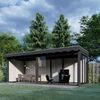 Mit einem Outdoor-Schutzdach von Trendhout erhalten Sie ein zusätzliches Zimmer, aber in Ihrem Garten! Sie können ihn als Loungebereich, Esszimmer im Freien, Büro, zusätzlichen Stauraum oder sogar als etwas anderes nutzen, an das wir noch nicht gedacht haben. Die Gartenhäuser von Trendhout bieten eine breite Palette von Möglichkeiten zur individuellen Gestaltung. Je nachdem, wie Sie den Außenbereich nutzen möchten, können Sie sich für Glas- oder Holzwände (Schiebewände) und mehr oder weniger geschlossenen Stauraum entscheiden. Es gibt so viele Möglichkeiten, dieses Gartenhaus nach Ihren Wünschen zu gestalten, dass wir Sie Schritt für Schritt durch einen 3D-Entwurf führen können.