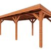 Der Sockel eines Trendhout-Außenunterstandes ist aus langlebiger Douglasie gefertigt. Die optionalen Wände sind aus Kiefernholz gefertigt und in verschiedenen Farben erhältlich. Die Glasschiebewände sind aus Einfachverglasung gefertigt. Um die Lebensdauer Ihres Wintergartens zu verlängern, empfehlen wir Ihnen, die Holzwände zu beizen.