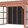 Der Sockel eines Trendhout-Außenunterstandes ist aus langlebiger Douglasie gefertigt. Die optionalen Wände sind aus Kiefernholz gefertigt und in verschiedenen Farben erhältlich. Die Glasschiebewände sind aus Einfachverglasung gefertigt. Um die Lebensdauer Ihres Wintergartens zu verlängern, empfehlen wir Ihnen, die Holzwände zu beizen.