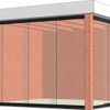 Der Sockel eines Trendhout-Außenunterstandes ist aus langlebiger Douglasie gefertigt. Die optionalen Wände sind aus Kiefernholz gefertigt und in verschiedenen Farben erhältlich. Die Glasschiebewände sind aus Einfachverglasung gefertigt. Um die Lebensdauer Ihres Wintergartens zu verlängern, empfehlen wir Ihnen, die Holzwände zu beizen.