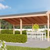 Das klingt genau wie unsere WoodAcademy Tiara. Dieses Modell kann als Überdachung, aber auch als Dach verwendet werden und ist aus pflegeleichter Douglasie gefertigt. Das bedeutet, dass Sie nicht unbedingt eine Beize verwenden müssen, um das Holz zu pflegen. Die Wahl fiel auf die Douglasie, weil sie zu den härtesten europäischen Nadelhölzern gehört und daher sehr robust ist. Der Unterstand ist freistehend und hat die Möglichkeit, Wände zu installieren. Das Dach ist extra hoch, was ein geräumigeres Gefühl und ein schöneres Aussehen vermittelt.