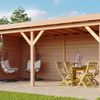 Suchen Sie in Ihrem Garten einen Platz zum Entspannen, um ihn das ganze Jahr über zu genießen? Dann könnte die WoodAcademy Earl Douglas Überdachung die perfekte Lösung sein. Das Modell besteht aus einer Überdachung aus Douglasienholz mit Douglasien Wänden für zusätzlichen Schutz vor den Wetterverhältnissen und bietet außerdem zusätzliche Privatsphäre. Stellen Sie ein Loungesofa zum Entspannen auf oder schaffen Sie einen Essbereich für gemütliche Sommergrillabende. Der Rahmen besteht aus einem fein gesägten Douglasien Rahmen mit schlanken 12x12 cm Balken, Verstrebungen und einem Dachüberstand (bis zu 60 cm möglich) an der Vorderseite. Dies verleiht dem Earl ein traditionelles Aussehen.