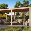 Entspannen Sie sich unter dieser Überdachung aus Douglasienholz von WoodAcademy. Perfekt für eine Außenküche, eine Loungebank oder einen Essbereich. Der Ruby Essential ist der kleine Bruder der Excellent-Überdachung. Das Rahmengestell aus fein gesägter Douglasie mit schlanken 15x15 cm Pfosten sorgt für eine schlichte und moderne Optik, ohne zu robust zu wirken.