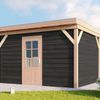 Sind Sie auf der Suche nach einem stilvollen Gartenhaus? Dann könnte dieses Gartenhaus Chevalier von WoodAcademy die perfekte Lösung sein. Die Basis des Modells besteht aus einer Überdachung aus Douglasie, die durch den Einbau von Wänden aus schwarzer Fichte geschlossen wird und ein Gartenhaus bildet. Nutzen Sie das Gartenhaus, um Ihre Fahrräder oder Gartengeräte unterzustellen, oder verwenden Sie es als Hobbyraum, damit Sie einen schönen Arbeitsbereich haben. Der Rahmen besteht aus fein gesägtem Douglasienholz mit schlanken 12x12 cm Balken und einem Dachüberstand (bis zu 60 cm möglich) an der Vorderseite. Dies verleiht dem Modell ein traditionelles Aussehen.
