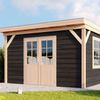 Sind Sie auf der Suche nach einem stilvollen Gartenhaus mit viel natürlichem Licht und einer Doppeltür? Dann könnte das Crown Gartenhaus von WoodAcademy die perfekte Lösung für Ihren Garten sein. Das Modell besteht aus einer Überdachung aus Douglasie und Wänden aus schwarzer Fichte. Nutzen Sie das Gartenhaus als Aufbewahrungsort für Ihre Gartengeräte oder als zusätzlichen Wohnbereich, in dem Sie sich entspannen können. Das mitgelieferte Fenster und die Tür mit Halbverglasung sorgen für mehr natürliches Licht.