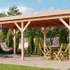 Sind Sie auf der Suche nach einer schönen Douglasien Überdachung, um Ihren Garten besonders lange draußen genießen zu können? Dann könnte die WoodAcademy Duke Überdachung die perfekte Lösung sein. Nutzen Sie die Überdachung als Abstellfläche für Ihr Loungesofa oder bauen Sie eine komplette Außenküche hinein - Sie haben die Wahl. Die freistehende Überdachung besteht aus einem gehobelten Douglasien Rahmen mit schlanken 12x12 cm Balken, Streben und einem Dachüberstand (bis zu 60 cm möglich) an der Vorderseite. Dies verleiht dem Duke ein traditionelles Aussehen.