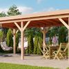 Sind Sie auf der Suche nach einer schönen Douglasien Überdachung, um Ihren Garten besonders lange draußen genießen zu können? Dann könnte die WoodAcademy Duke Überdachung die perfekte Lösung sein. Nutzen Sie die Überdachung als Abstellfläche für Ihr Loungesofa oder bauen Sie eine komplette Außenküche hinein - Sie haben die Wahl. Die freistehende Überdachung besteht aus einem gehobelten Douglasien Rahmen mit schlanken 12x12 cm Balken, Streben und einem Dachüberstand (bis zu 60 cm möglich) an der Vorderseite. Dies verleiht dem Duke ein traditionelles Aussehen.